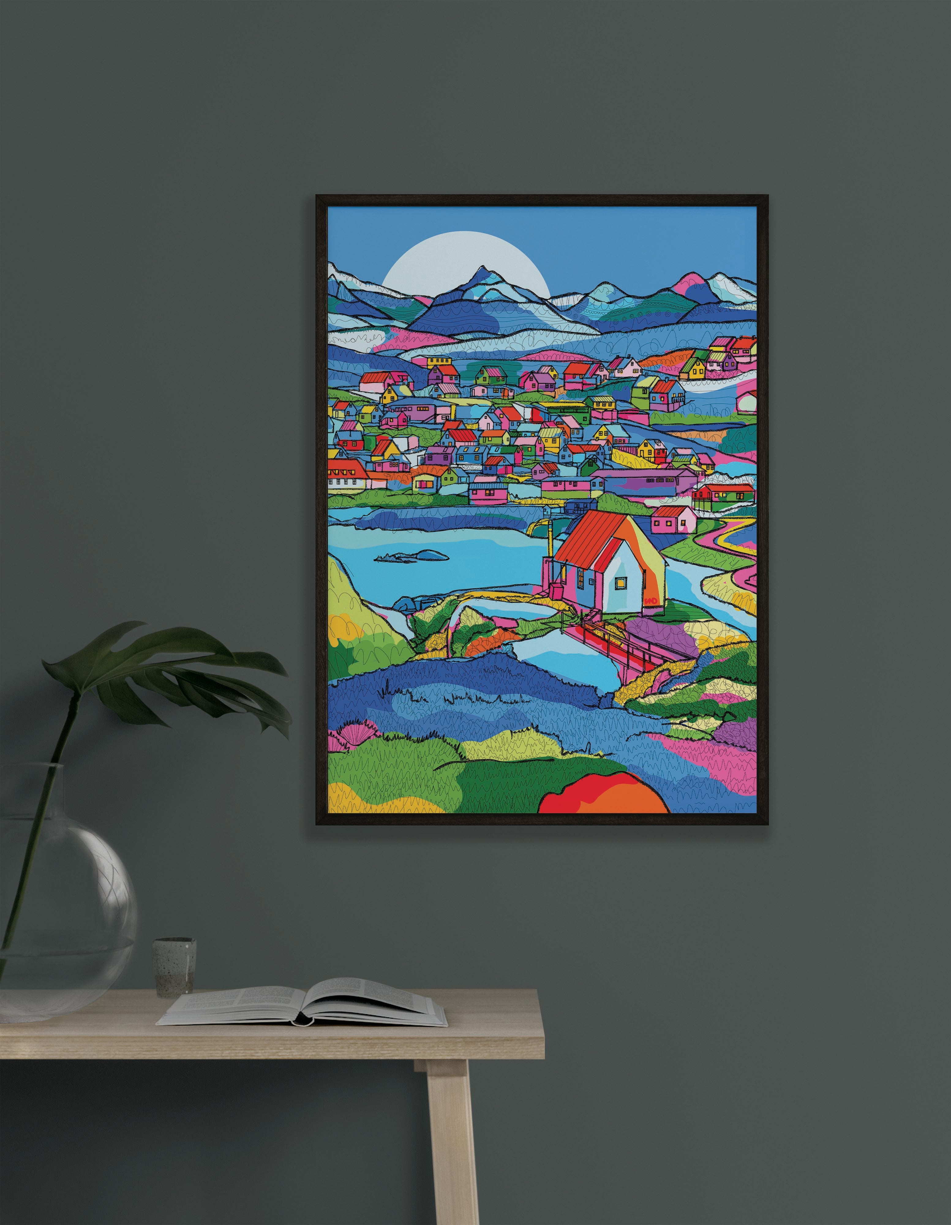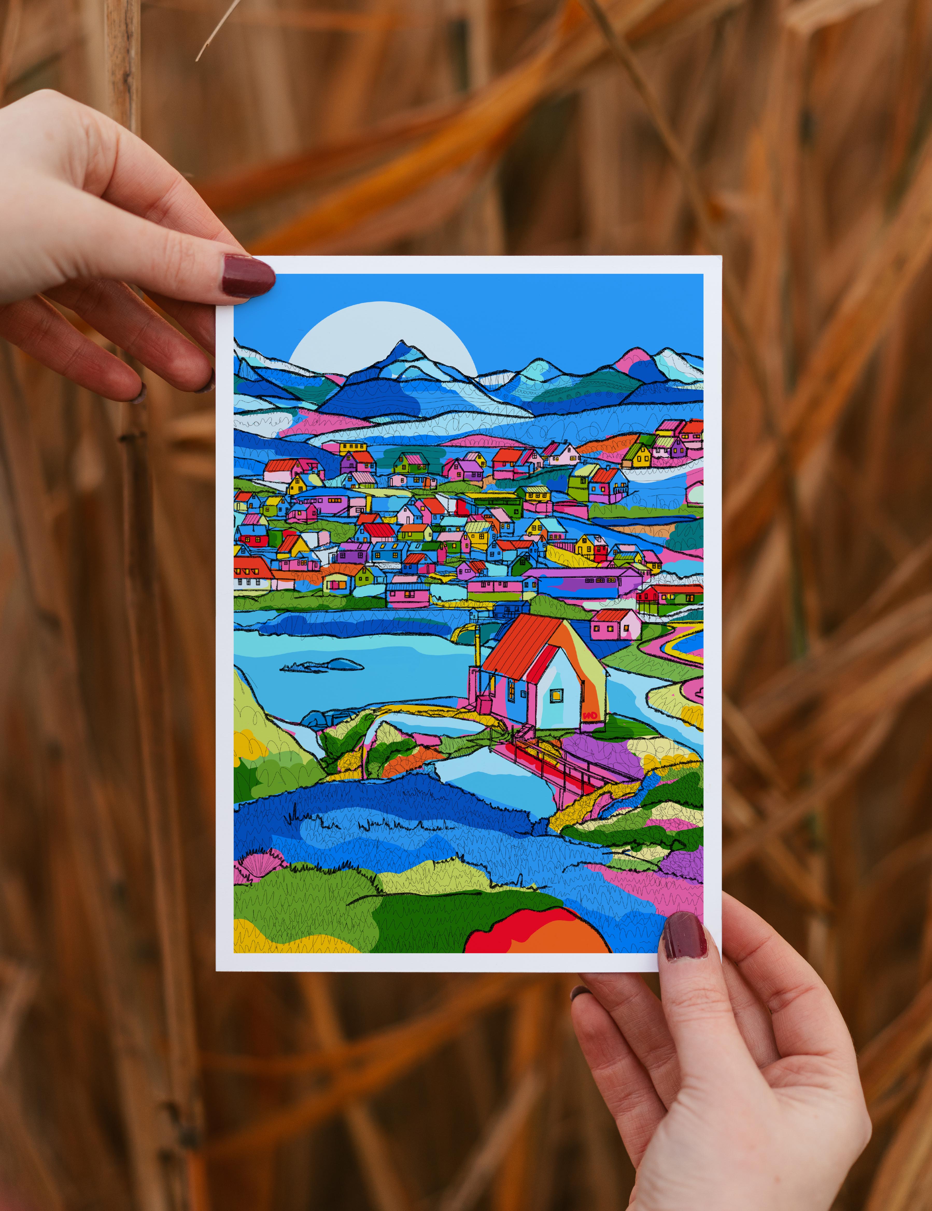 This print would add a splash of colour to any room; it’s a great reminder of a holiday to Greenland or a gift for someone who lives in Greenland. It could be teamed with one of the many other destination illustrations available in my shop.