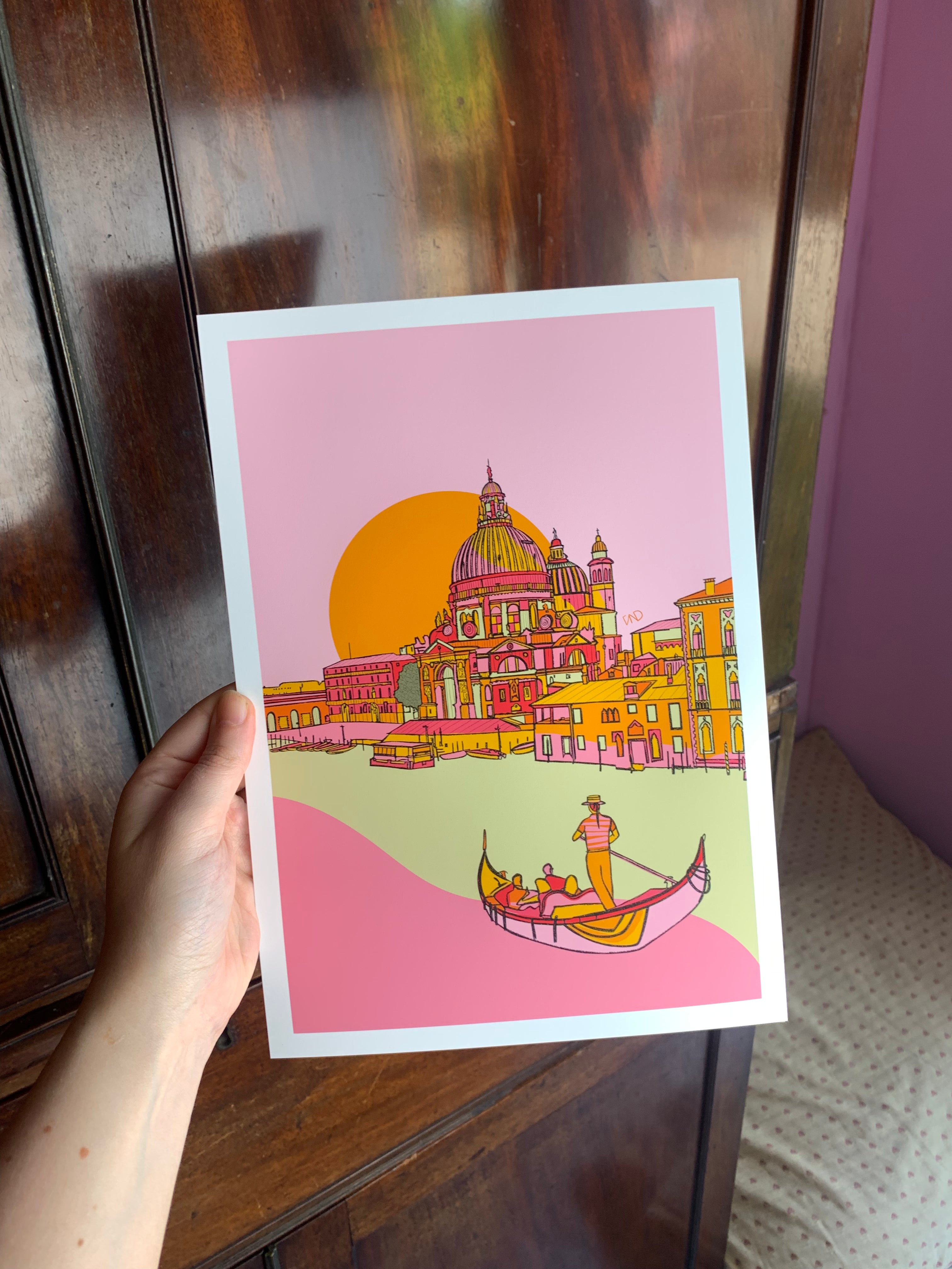 This print would add a splash of colour to any room; it’s a great reminder of a trip to Venice or a gift for someone who loves Italy. It could be teamed with one of the many other destination illustrations available in my shop.