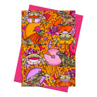 The card folds to A6 printed onto high-quality 300gsm recycled FSC-approved board with a matte finish. Packed in biodegradable cello with a fuschia pink envelope. Blank inside.
