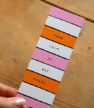 Your Calm Is Out There quote bookmark illustrated in pink, beige, and orange.