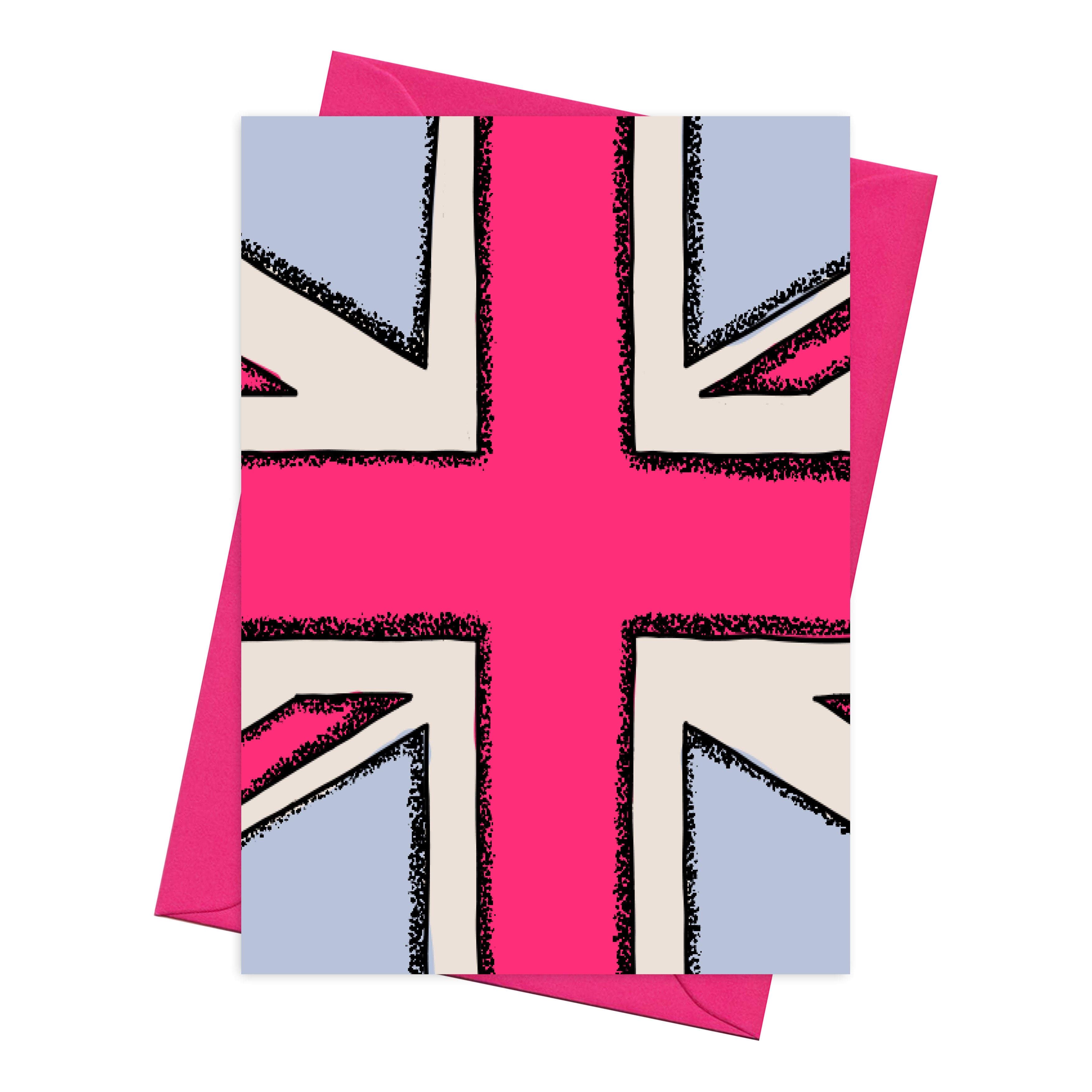 The card folds to A6 printed onto high-quality 300gsm recycled FSC-approved board with a matte finish. Packed in biodegradable cello with a fuschia pink envelope. Blank inside.
