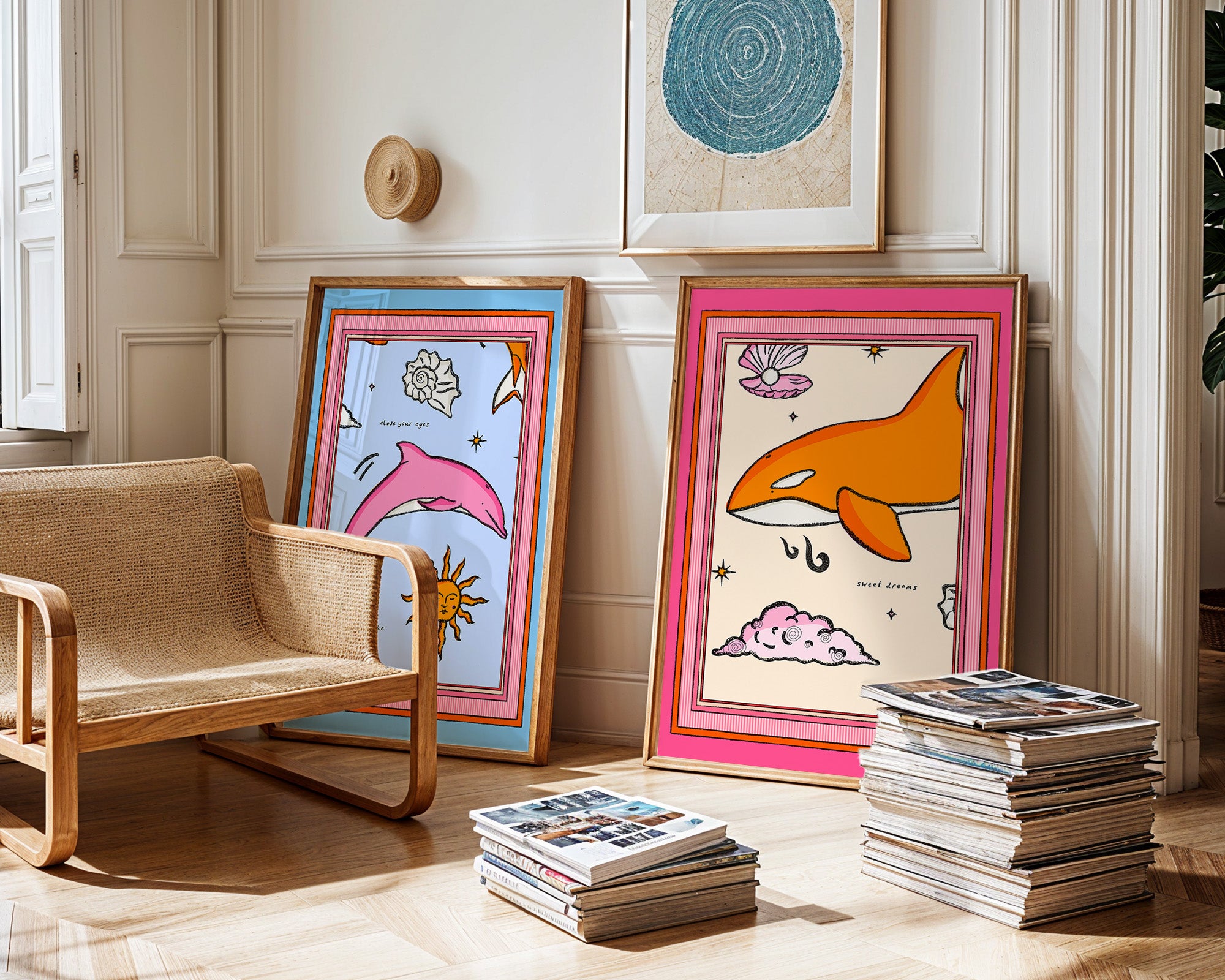Dolphin and Orca Art Print Duo