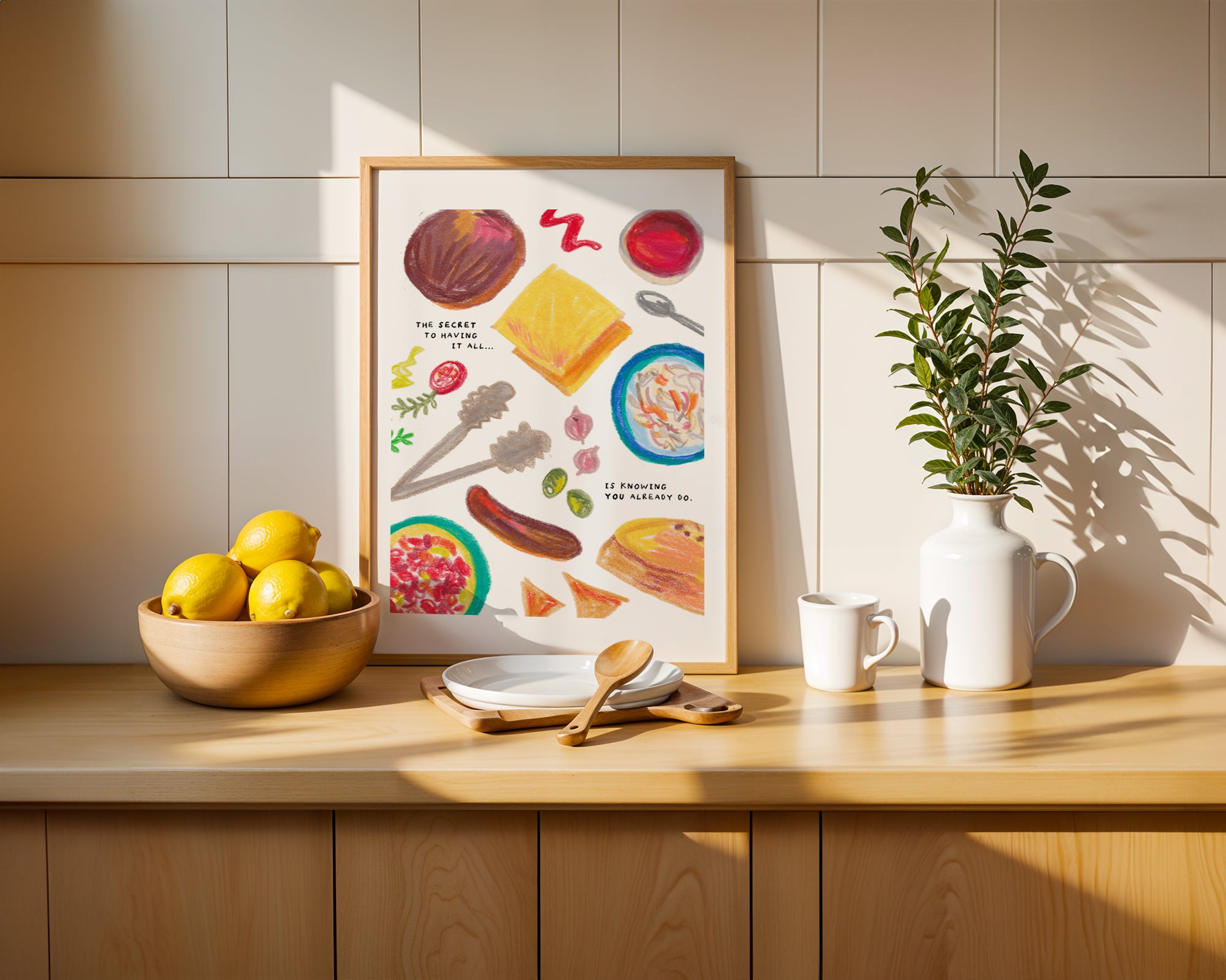This print would add a smile to any summer babe's face; it’s a great pop of colour for a kitchen, or gift for your favourite manifestation girly. It could be teamed with one of the many other stylish illustrations available in my shop.