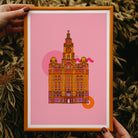 This stunning Liverpool art print is a bold, eye-catching statement piece that will brighten any space. The print features a bright pink colour scheme, showcasing the iconic Royal Liver building in all its glory. A must-have for Liverpool fans!