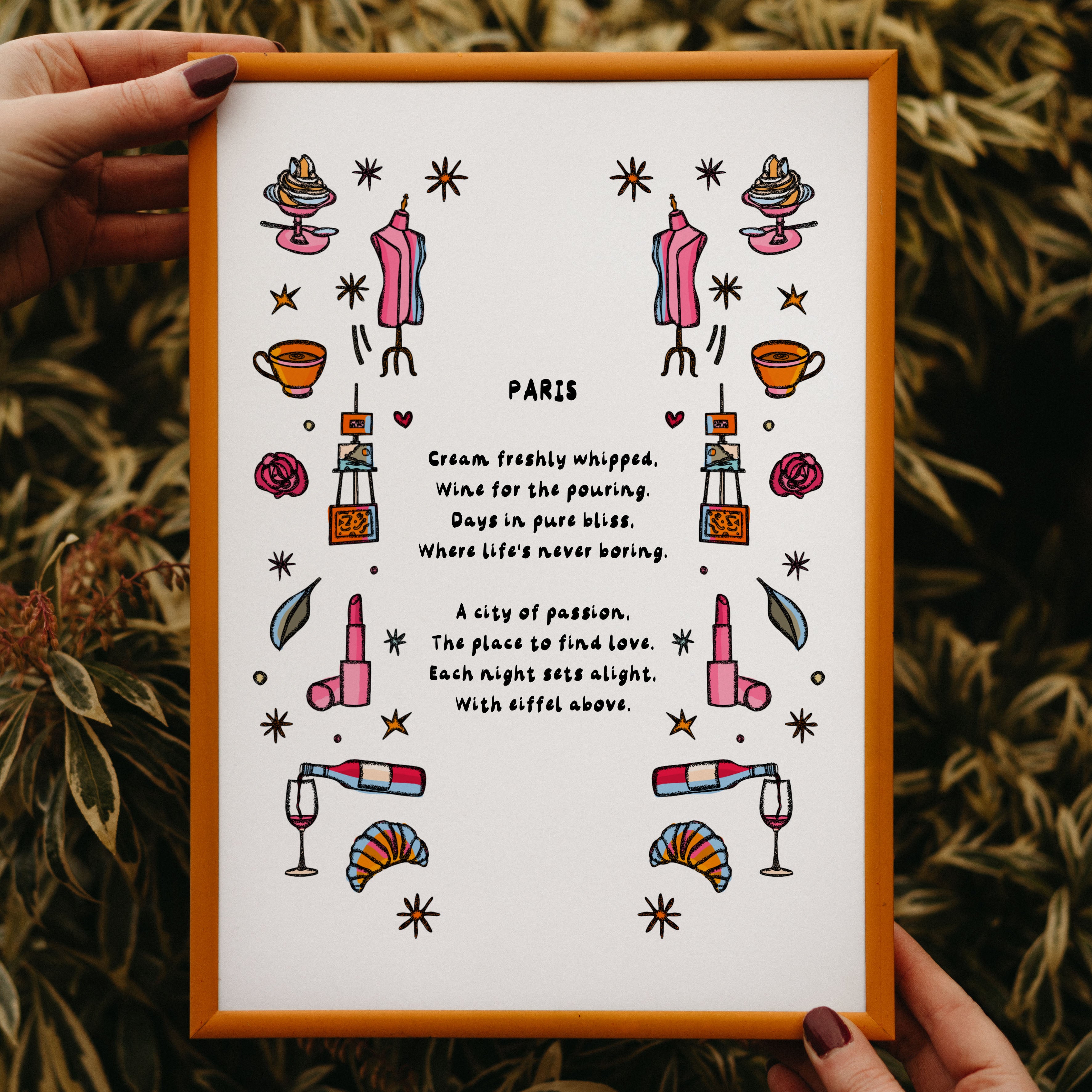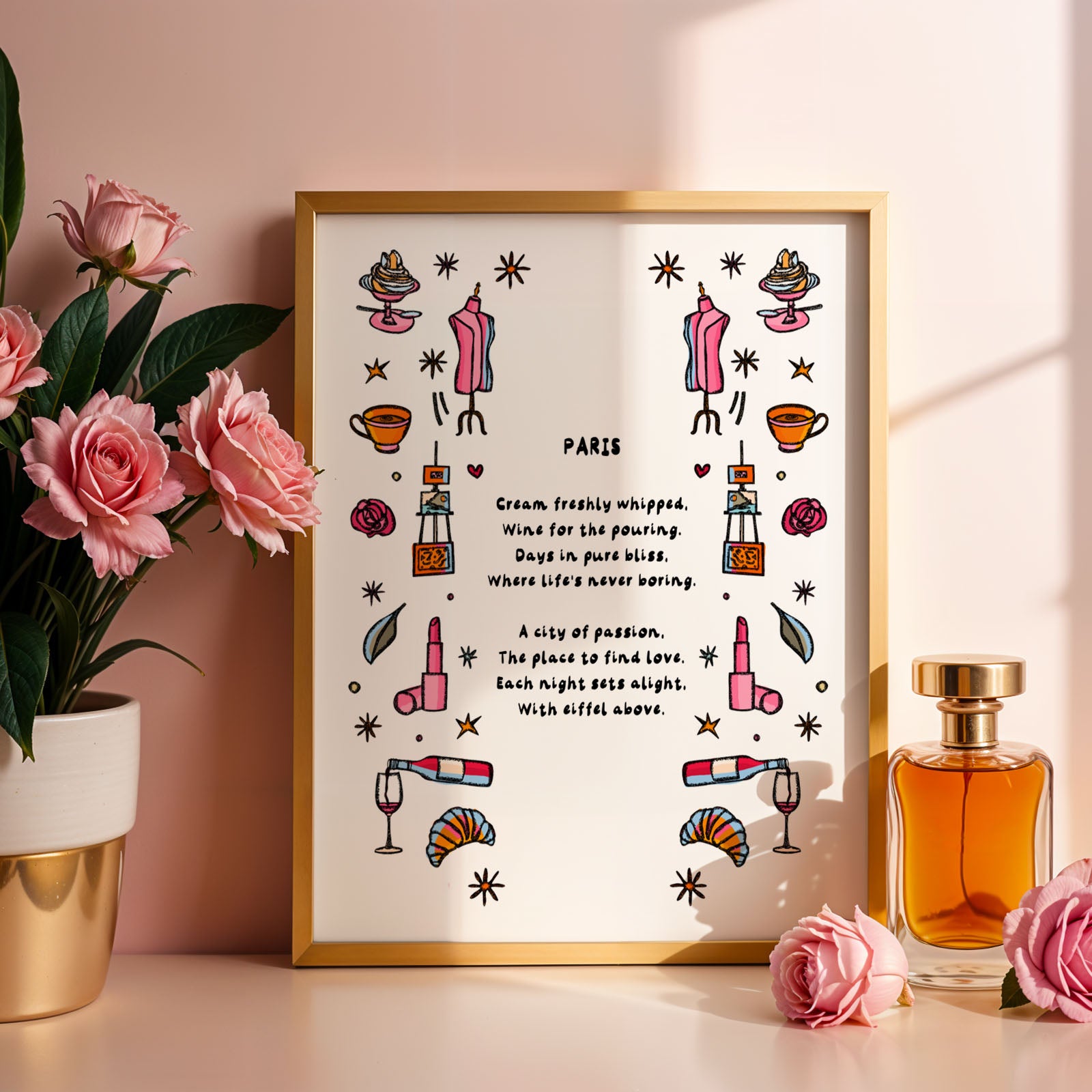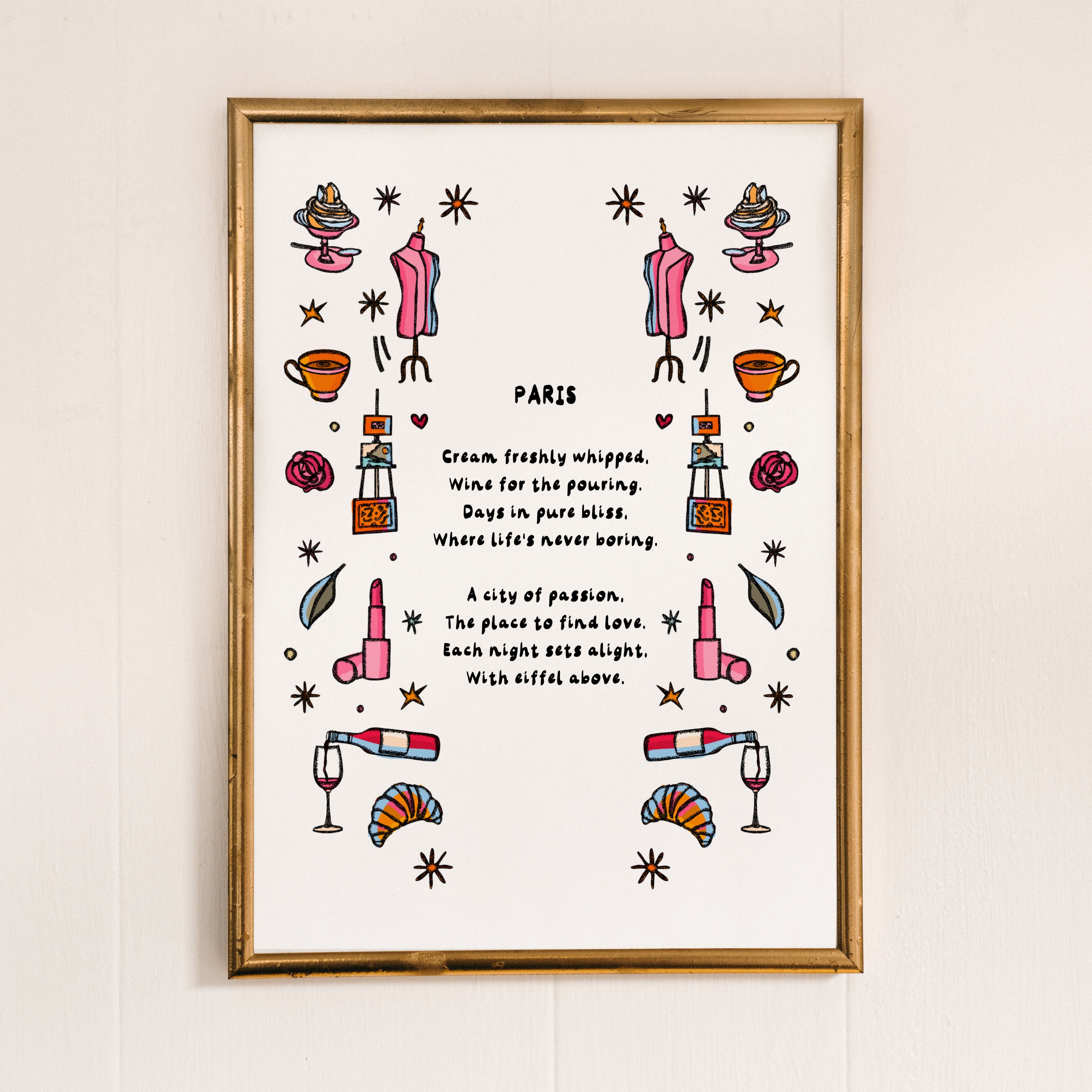 A Paris-inspired illustrated art print with the text