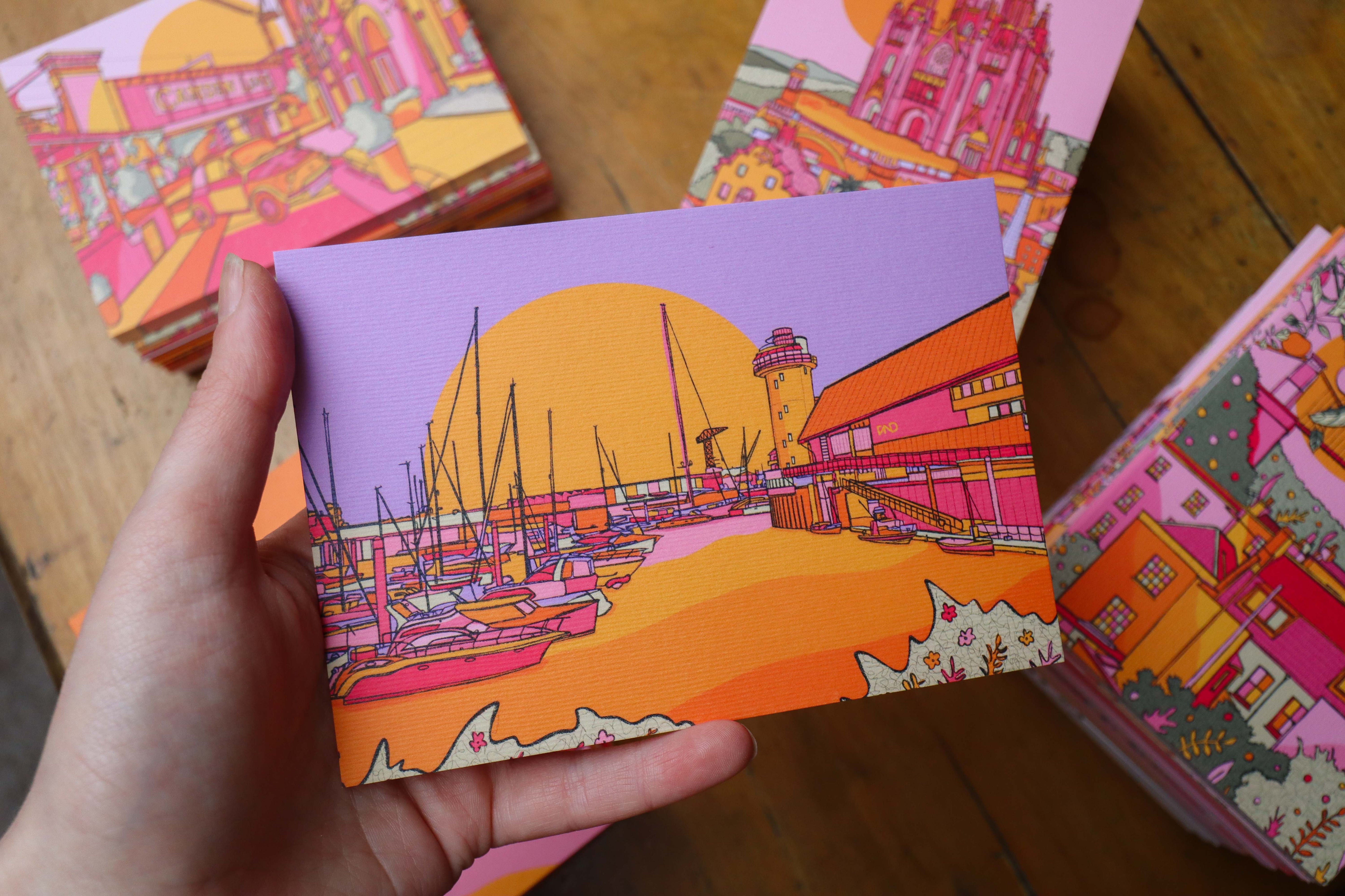 This hand-drawn artwork of Falmouth harbour would make the perfect accompaniment to a birthday gift or frame it for a little pop of colour on your walls.