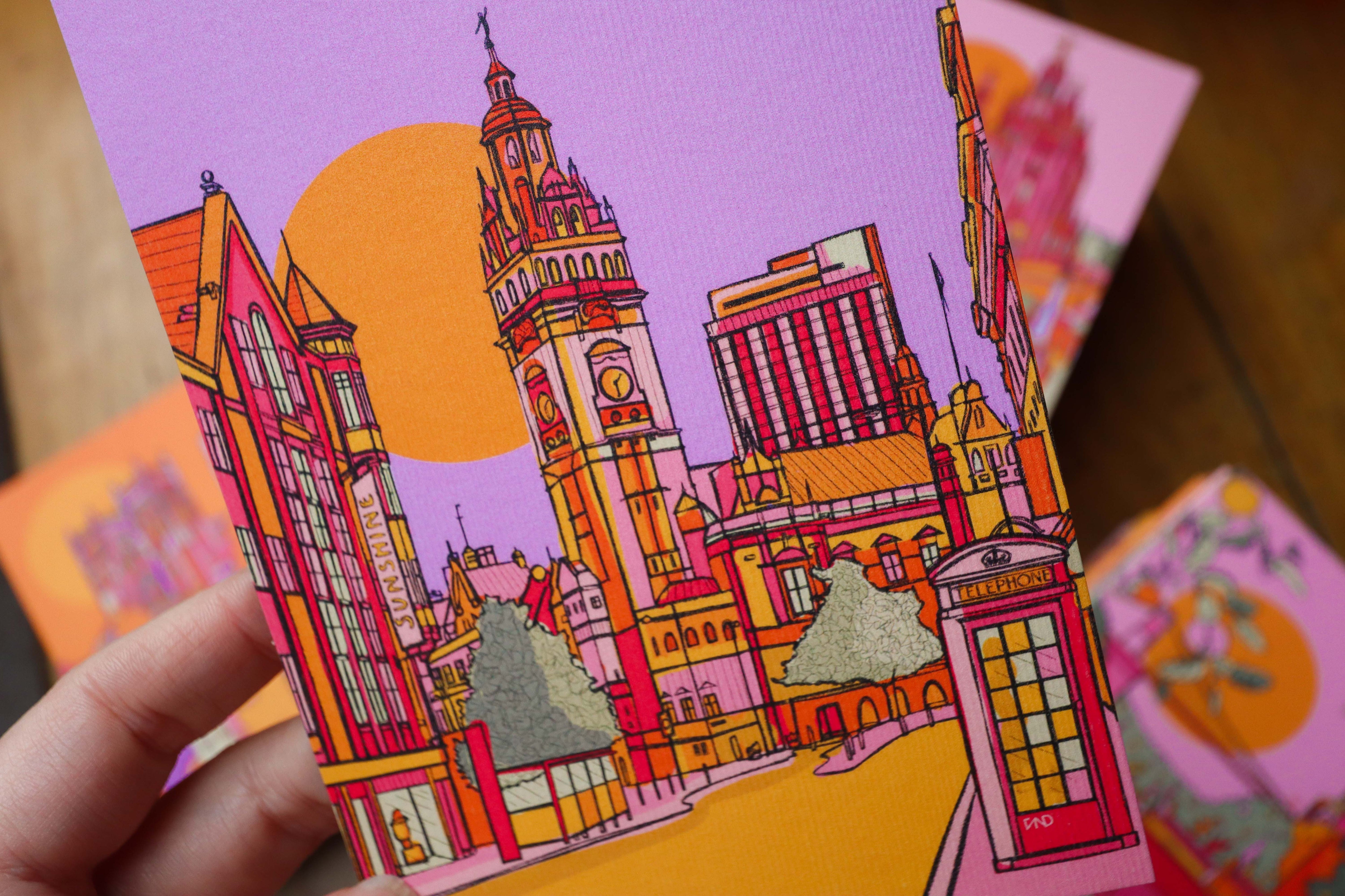 This hand-drawn artwork of Sheffield would make the perfect accompaniment to a birthday gift or frame it for a little pop of colour on your walls.