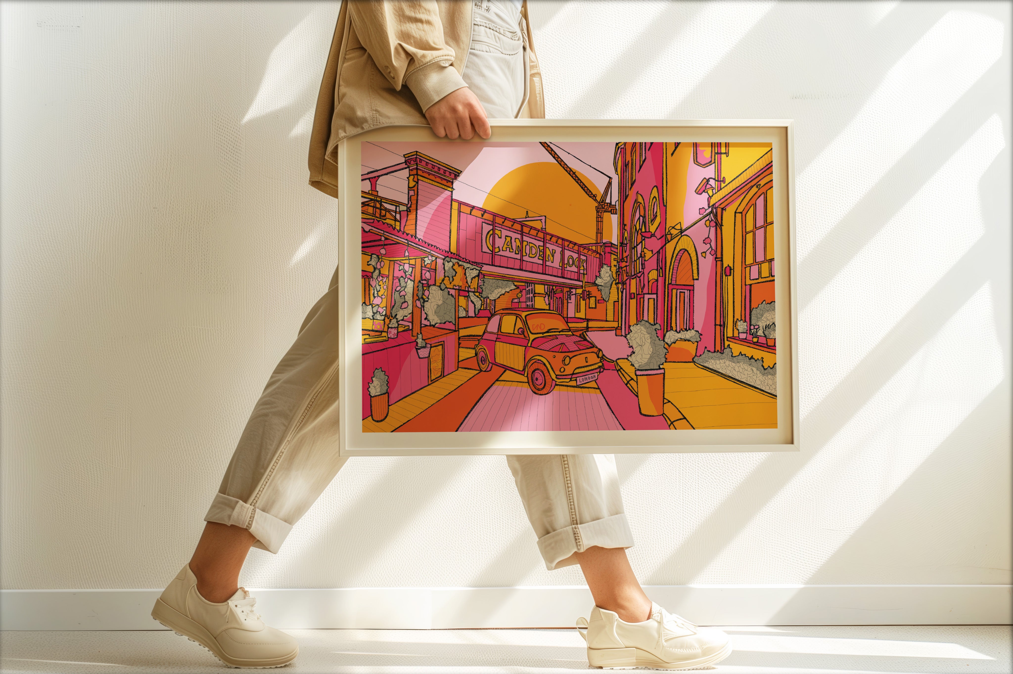 This piece was hand-drawn on my drawing tablet, inspired by my love for the creative vibe of Camden and all the incredible finds at the Camden Markets