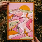 This is a fine art print, printed onto 300gsm FSC-certified card stock with a matte finish. Packaged in a sealed biodegradable cello bag with a recycled grey-board backing to support the print.