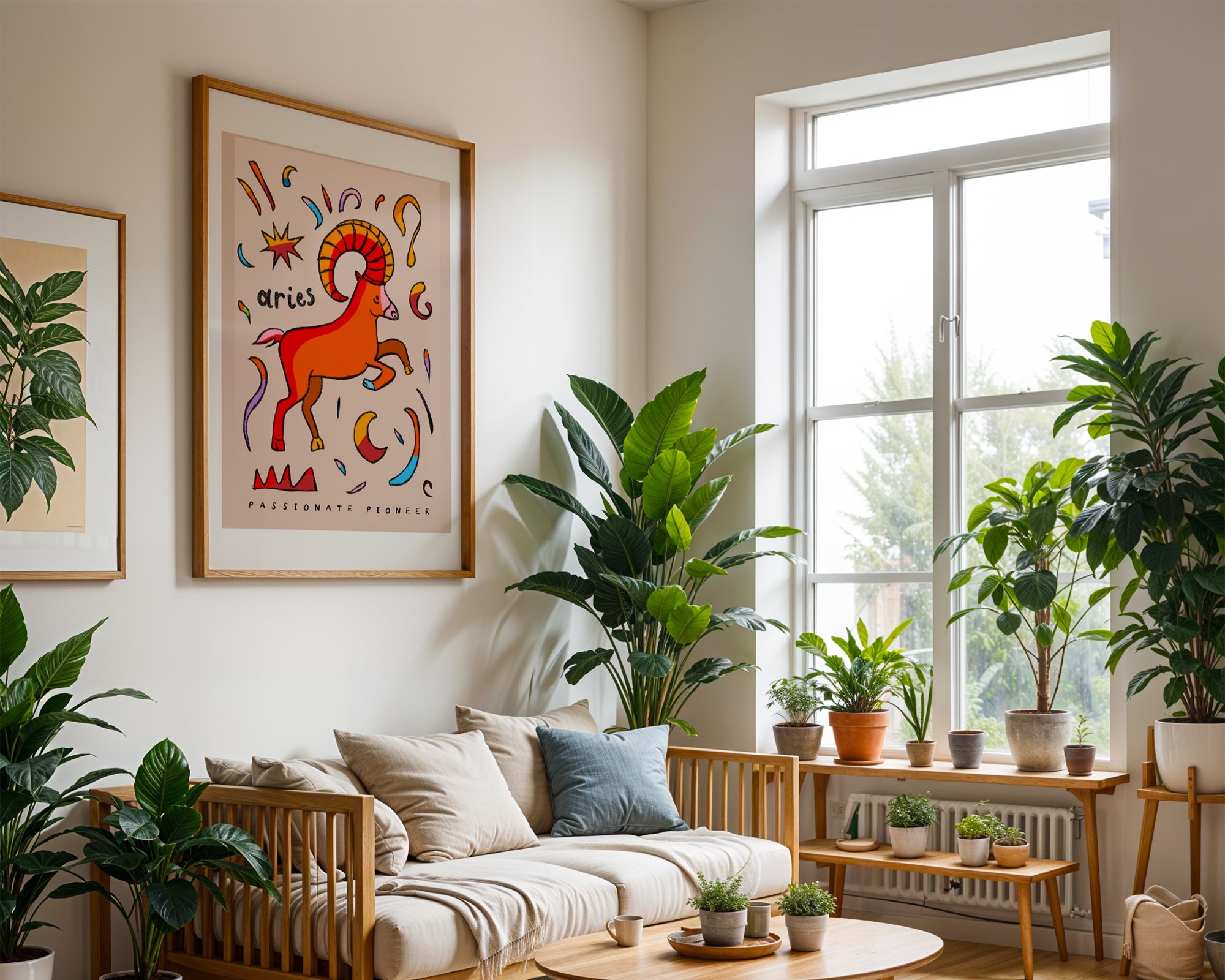 Perfect for horoscope lovers, Aries birthdays, and vibrant celestial home decor.